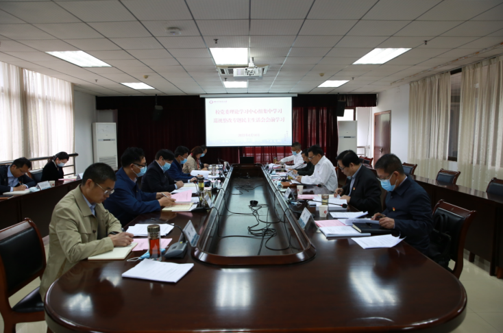 本网讯 4月14日,学校在黄家湖校区明德楼一楼会议室开展校党委领导班子巡视整改专题民主生活会集中学习暨2022年校党委理论学习中心组第三次学习。校党委书记唐峻主持会议,校党委理论学习中心组成员参加了学习。