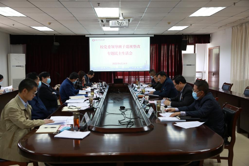 本网讯 根据省委统一部署安排,在省委巡视办、省纪委监委及省委第十一巡视组的指导下,4月14日,学校党委领导班子召开巡视整改专题民主生活会。校党委常委全体同志参加会议,全国政协委员、中国民主同盟湖北省委副主委、副校长马骏,学校办公室,纪委 监察专员办公室综合室,党委组织部,党委宣传部相关负责同志列席会议。会议由校党委书记唐峻主持。