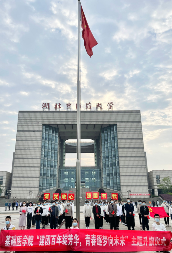 本网讯 为大力弘扬爱国主义精神,引导青年学子坚定理想信念,4月18日,基础医学院在黄家湖校区图书馆广场举办“建团百年绽芳华,青春逐梦向未来”主题升旗仪式。校党委副书记李水清,基础医学院领导班子成员、党支部书记代表、专职组织员、辅导员和学校党校第84期基础医学院培训班学员、学生代表参加仪式。
