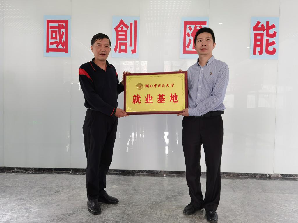 活动现场,李水清为国创汇能(武汉)医学工程有限公司授予“湖北中医药大学就业基地”牌匾。