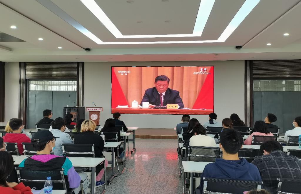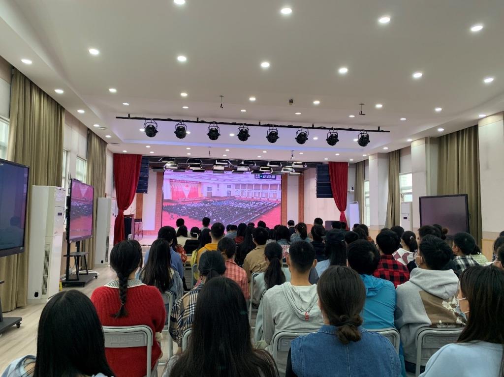 本网讯 5月10日上午,庆祝中国共产主义青年团成立100周年大会在北京人民大会堂隆重举行。中共中央总书记、国家主席、中央军委主席习近平出席大会并发表重要讲话。学校组织全校师生通过电视或网络集中收看大会直播,认真聆听习近平总书记的重要讲话。习近平总书记的重要讲话在全校师生中引发强烈反响,大家纷纷表示,要以庆祝中国共产主义青年团成立100周年为契机,坚持党旗所指就是团旗所向,筑牢信仰之基、把握思想之舵,坚定理想信念、激发奋进力量,只争朝夕、不负韶华,踔厉奋发、勇毅前进,为党和国家事业贡献青春、建立功勋,以优异成绩迎接党的二十大胜利召开。