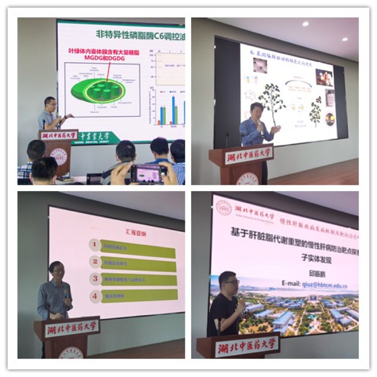 华中农业大学植物科学技术学院郭亮教授、金双侠教授,我校余坤教授、邱振鹏副教授分别围绕“棉花基因编辑与分子育种研究进展”“多组学解析油菜籽粒油脂积累的机制”“茅苍术种质资源的可持续利用”“基于肝脏脂代谢重塑的慢性肝病防治靶点探索与新分子实体发现”,介绍了各自研究进展与成果。整场报告深入浅出,引人入胜,交流互动环节气氛热烈。