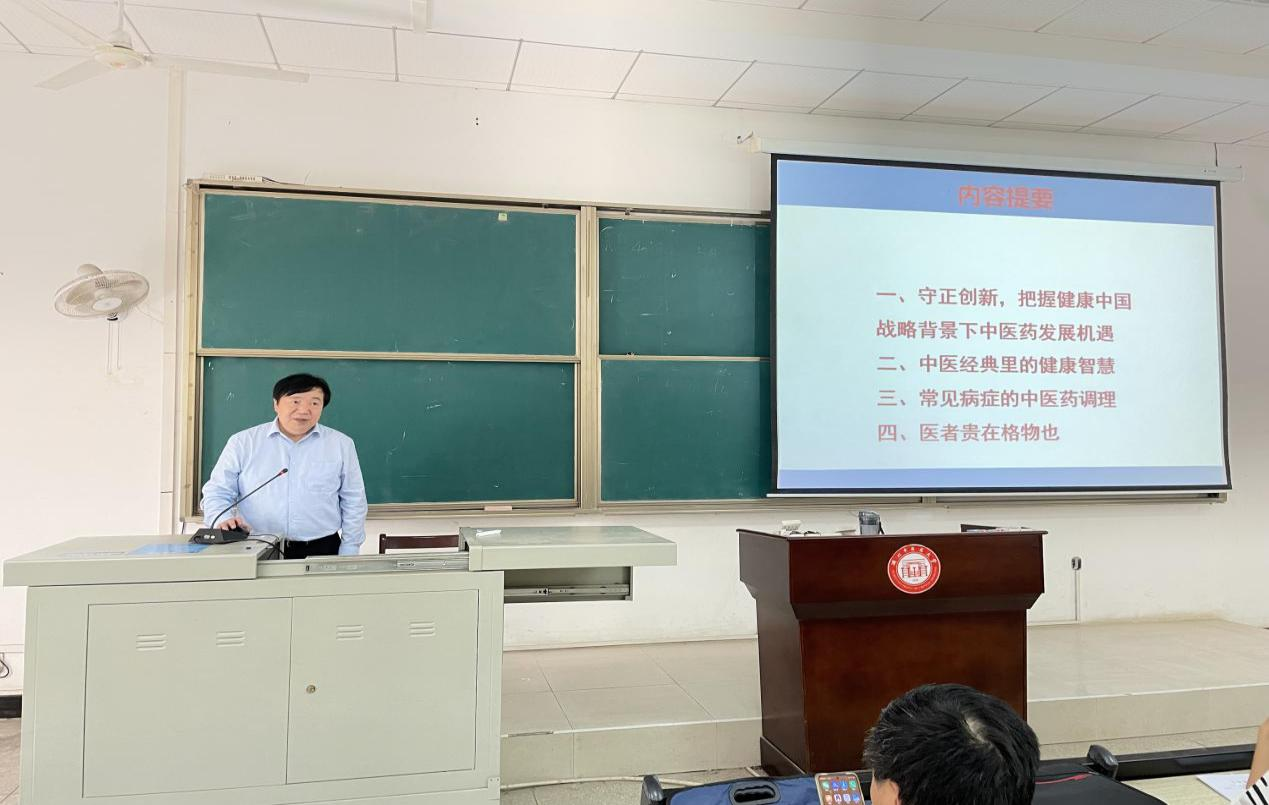 本网讯 5月12日,副校长王平在基础楼J107教室为2021级针灸推拿学专业学生讲授《健康中国战略与中医药》的思政课。马克思主义学院相关负责人和学院部分教师参与聆听。