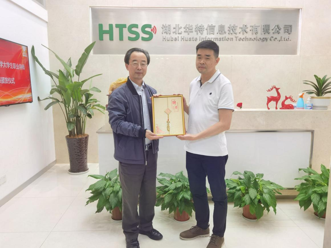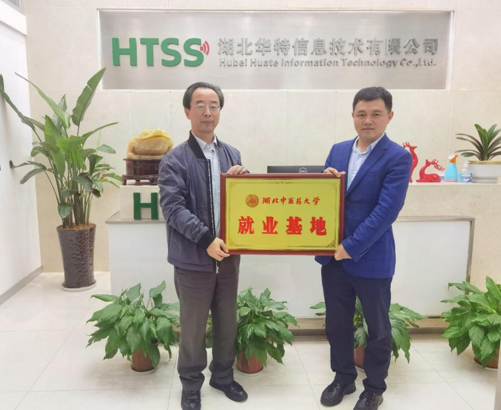 校党委常委张子龙向湖北华特信息技术有限公司颁授“湖北中医药大学就业基地”牌匾
