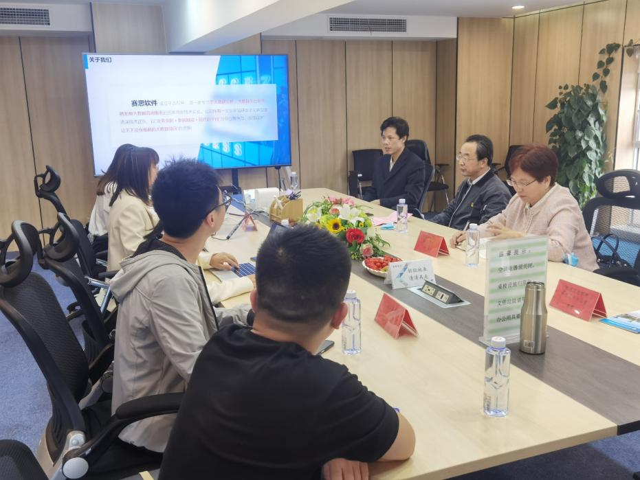 在武汉东方赛思软件股份有限公司,张子龙一行与公司卫生健康事业部负责人王先利,人力资源部负责人佘佳丽,2012级信息管理与信息系统专业校友、政企事业部负责人王佳,2017级信息管理与信息系统专业校友、实施工程师覃象矗进行了座谈交流。