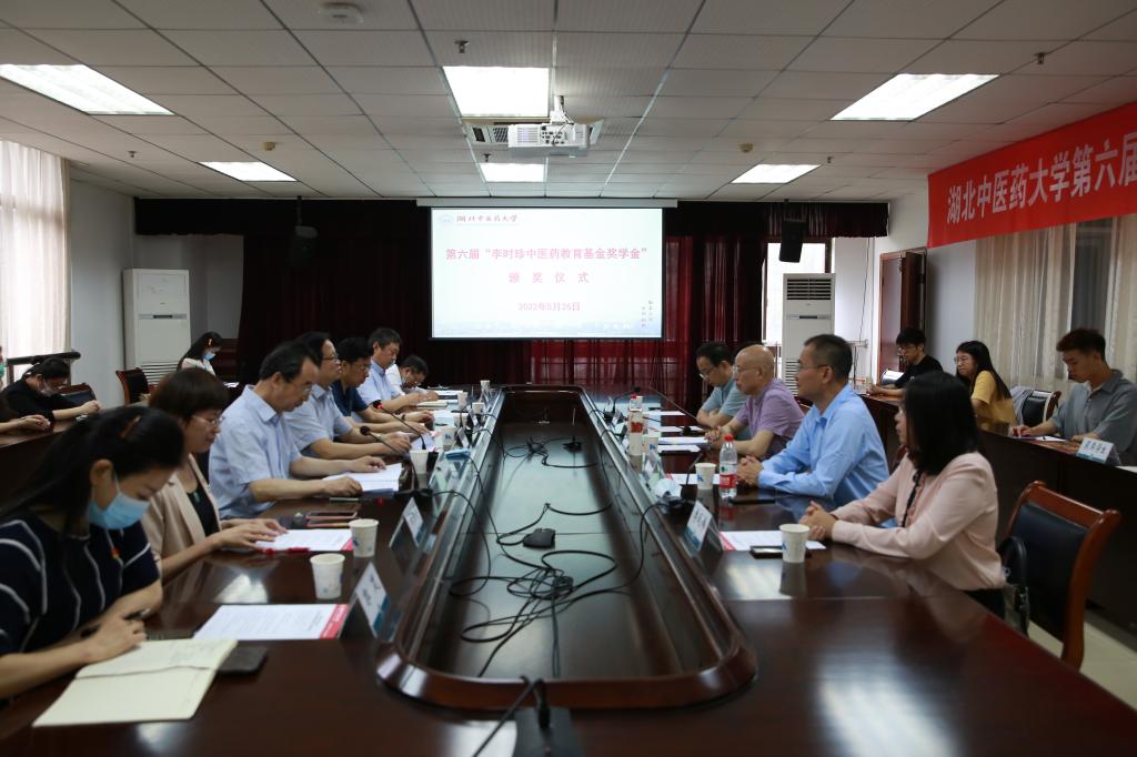 本网讯 5月26日,学校第六届“李时珍中医药教育基金奖学金”颁奖仪式在黄家湖校区明德楼一楼会议室举行。校长吕文亮,副校长黄必胜,校党委常委张子龙,学校1978级中药专业杰出校友、李时珍中医药教育基金会理事长、深圳市宝安纯中医治疗医院中药学科带头人梅全喜教授,李时珍中医药教育基金会理事李凤伟、王尚勇、刘树群、陈林霖,学校办公室、药学院负责人、相关负责人以及药学院师生代表参加颁奖仪式。仪式由张子龙主持。