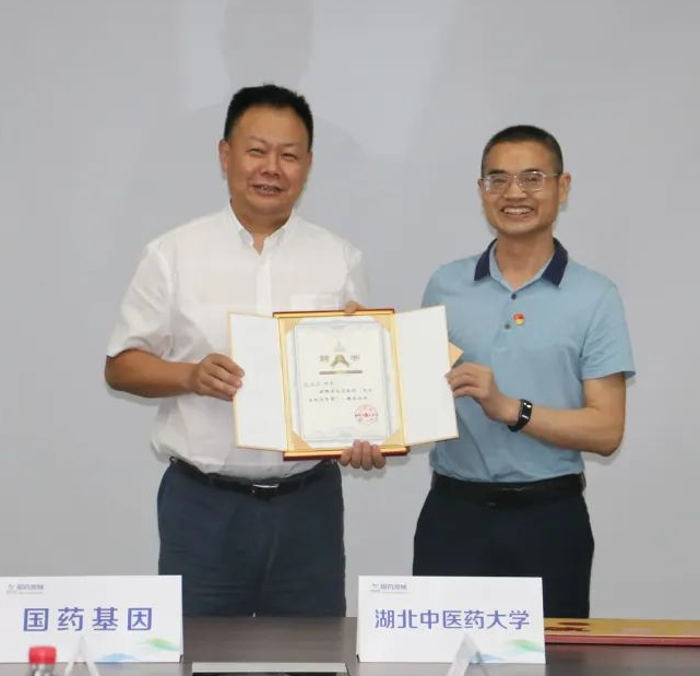 授牌仪式上,杨波代表学校为国药集团基因科技有限公司颁授“湖北中医药大学就业基地”牌匾,为陈贻军颁发学校“大学生职业导师”聘书。