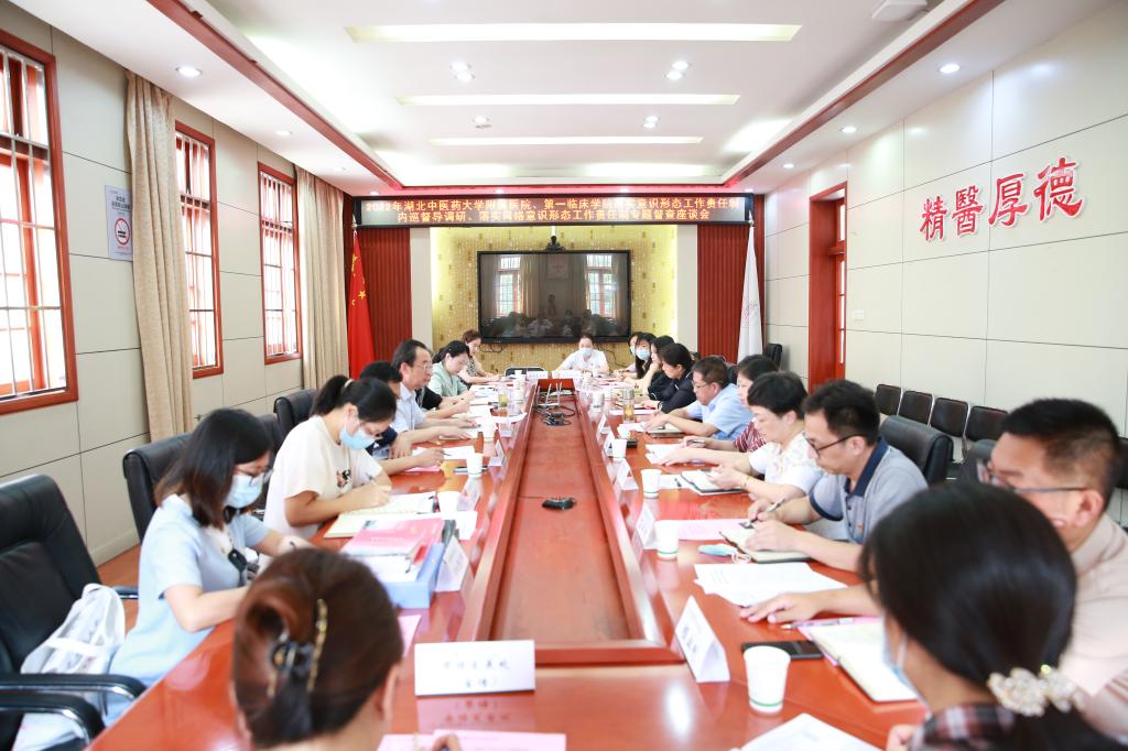 本网讯 6月13日,校党委常委张子龙带领学校意识形态工作责任制检查考核小组第三组成员单位负责人、相关负责人,在附属湖北省中医院花园山院区行政楼二楼会议室组织召开督导调研座谈会,对附属湖北省中医院党委、第一临床学院党委落实意识形态工作责任制情况、落实网络意识形态工作责任制情况进行内巡督导调研和专题督查。会议由校党委副书记、附属湖北省中医院党委书记陈刚主持。医院党委副书记、纪委书记郭艳红,第一临床学院领导班子成员,医院和第一临床学院相关职能部门负责人、党支部书记、辅导员代表等参加座谈会。