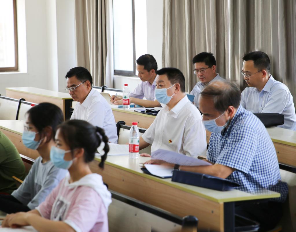 本网讯 为落实党员干部下基层察民情解民忧暖民心实践活动要求,6月14日,湖北省教育厅副厅长周启红带领教育厅科技处党支部全体党员来我校开展下基层“八个一”活动,调研了解学校教师、学生在工作学习生活中的困难和问题。校党委书记唐峻、校长吕文亮等校领导参加调研。