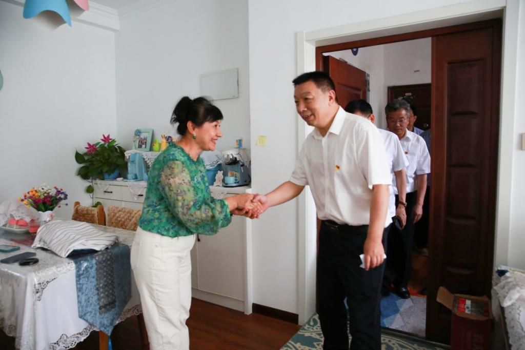 周启红一行还走进教职工家庭和学生宿舍,访谈慰问困难教师,与学生面对面谈心。在少数民族专职辅导员穆妮乐老师家中,周启红详细询问穆妮乐老师工作、生活情况,对她的工作给予充分肯定,嘱咐她保重身体、健康生活。在北区7栋检验学院党员示范寝室7213宿舍,周启红亲切地与同学们交谈,了解学习、生活和专业发展情况,鼓励各位党员同学发挥先锋模范作用,在专业学习、品德修养、创新创业、志愿服务等方面中争当先进,努力成为堪当民族复兴重任的时代新人。