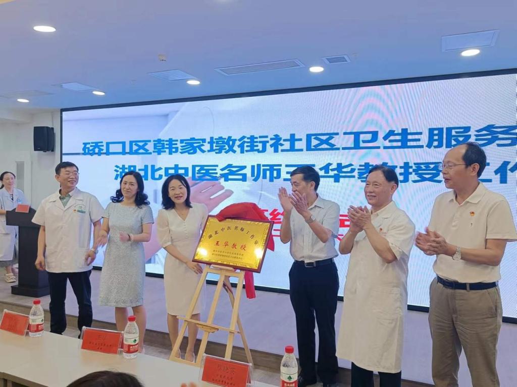 本网讯 6月15日,湖北中医名师王华教授工作室在硚口区韩家墩街社区卫生服务中心新院区揭牌开诊。校党委副书记李水清,党委组织部负责人、科技处相关负责人及针灸骨伤学院负责人、相关负责人出席活动仪式,并在社区工作人员的陪同下参观了新院区。李水清对该中心“打造中医特色专科,推广中医适宜技术”的发展目标给予了高度肯定。
