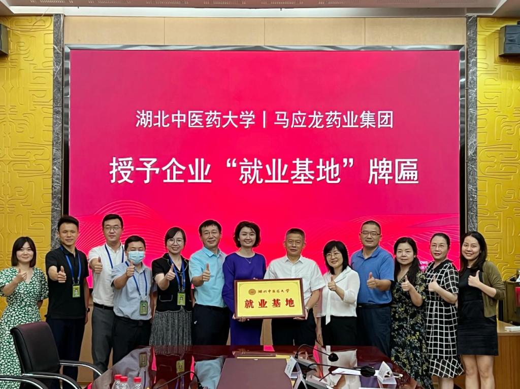 胡少萍向马应龙药业集团股份有限公司授予了“湖北中医药大学就业基地”牌匾,向孔国强、祝灿等颁发了“大学生职业导师”聘书。
