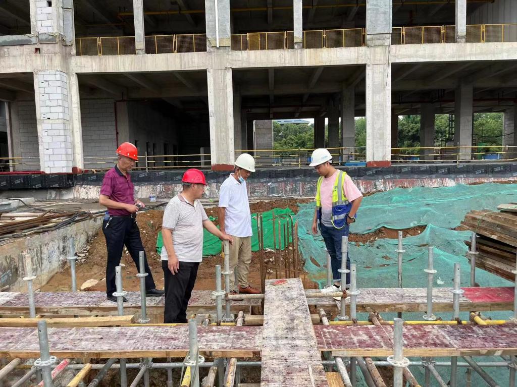 基本建设处和建设相关单位正在进行机械车库基础工程核验