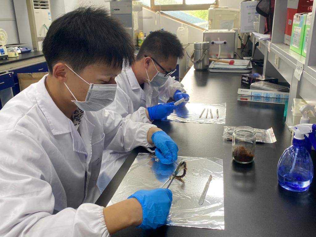 学校中药资源评价与组学研究团队开展蜈蚣表型研究实验