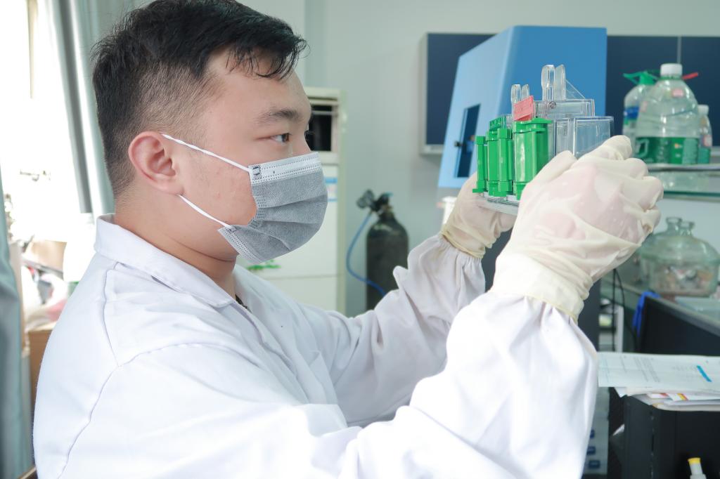 学校中医药微生物组与营养代谢研究团队学生在检测样本吸光度