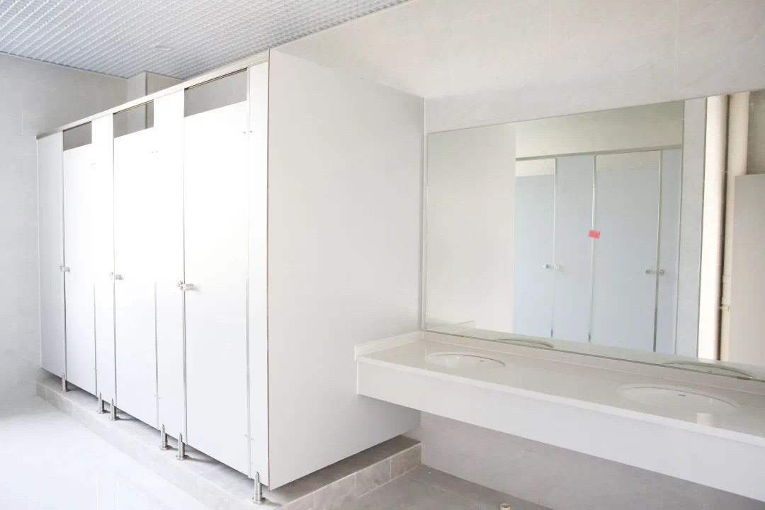 黄家湖校区本草苑、杏林阁26间公共卫生间整体改造,翻新内部隔板、粉刷墙面、铺设地砖、更换洁具、安装烘手器、改造给排水管道等。“清新风”装饰风格,大气简约。