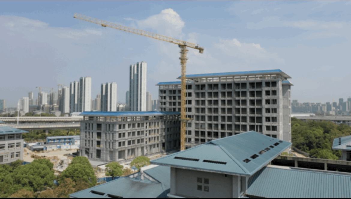 暑期,中医药综合实训大楼按计划进入室外幕墙立面、机械车库、园林道路以及室内机电安装、室内装修阶段。目前,大楼挑檐及屋面、室内墙体刷白及干式地面、地下室砌体二构均已施工完成,机电部分桥架、配电箱、消防栓与喷淋、排烟风管与风机施工完成,设备部分塔楼的主管及裙楼水管与风管、冷却塔安装完毕,电梯、机械停车库主体正组织安装,外立面幕墙完成所有主龙骨及80%的次龙骨安装,玻璃窗及石材幕墙正在安装。整体预计今年年底竣工。