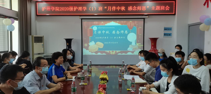 本网讯 中秋话团圆,共叙师生情。9月10日,护理学院举行 “月伴中秋,感念师恩”主题班会。校党委副书记张子龙、学生工作部相关负责人出席活动,护理学院负责人及相关负责人,全体专职辅导员、学生干部代表以及2020级护理学(1)班全体同学参加此次班会。
