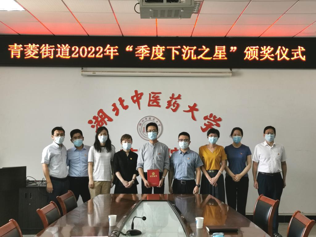 会上,马丽君对药学院下沉党员参与常态化疫情防控以及社区治理表示感谢,并为颜春潮同志颁发了青菱街道黄家湖社区2022年“季度下沉之星”荣誉证书。