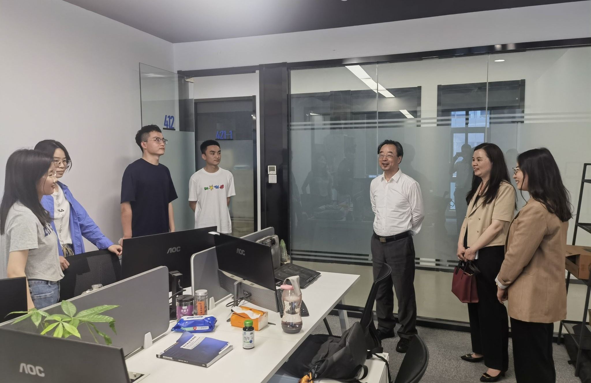 座谈会后,张子龙一行走访查看学生实习环境,与实习学生进行深入交流,了解同学们的实习工作情况和学习进展。同学们纷纷表示,通过毕业实习开阔了专业学术视野,提升了实践运用能力,培养了团队合作精神,增强了就业竞争优势。