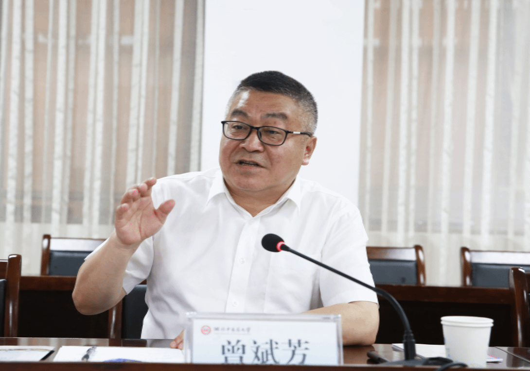 刘松林代表学校对曾斌芳局长一行来校表示热烈欢迎,并简要介绍了学校近期建设发展情况。他指出,学校扎根荆楚大地,坚持以服务中医药全产业链、中医药全生命周期健康需求为导向,深化人才、科技、医疗供给侧改革,加快转型升级和高质量发展,积极赋能地方社会经济发展。他表示,学校与新疆维吾尔自治区合作基础良好,合作空间广阔,希望双方以此次调研指导为契机,推进学校教育、科技、人才优势与自治区的区域优势深度结合,建立长期、稳定、深入的合作关系,共同推进新疆维吾尔自治区和湖北中医药事业和产业高质量发展。