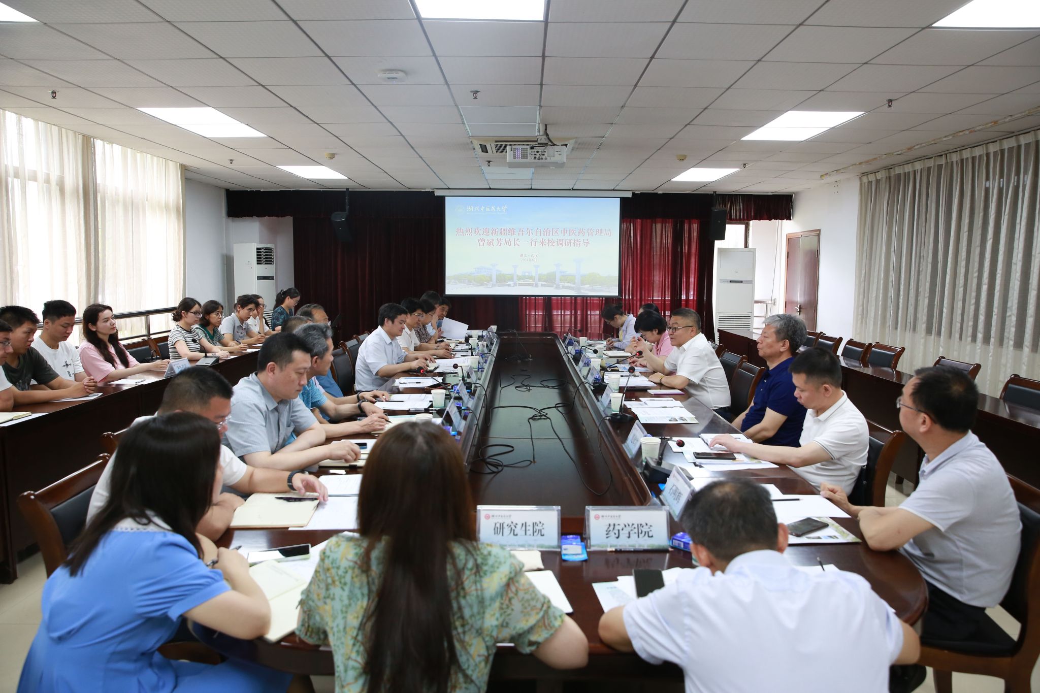 本网讯 6月19日,新疆维吾尔自治区中医药管理局党组书记、局长曾斌芳一行来校调研。湖北省卫生健康委监察专员、一级调研员郭承初,校长刘松林,副校长杨波,党委常委曹继刚、王彦春及相关职能部门和学院负责同志参加调研座谈。座谈会由杨波主持。