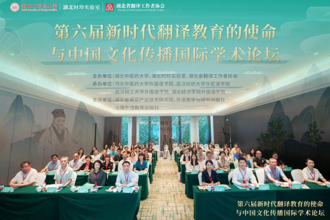 本网讯 6月23日,由湖北中医药大学、湖北时珍实验室、湖北省翻译工作者协会主办,我校外国语学院、武汉纺织大学外国语学院、武汉轻工大学外国语学院、湖北经济学院外国语学院承办的第六届新时代翻译教育的使命与中国文化传播国际学术论坛在时珍故里——湖北蕲春举行。会议由湖北省蕲艾产业技术研究院、外语教学与研究出版社、上海外语教育出版社协办。来自国内外80余名专家学者、青年学子齐聚一堂,共襄文化翻译与国际传播高质量发展大计。