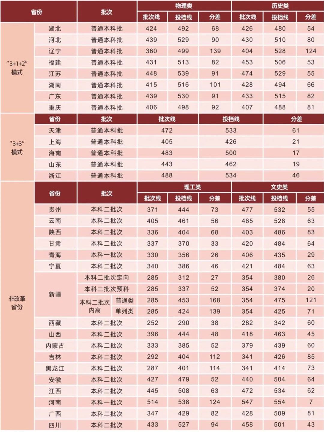 2022年、2023年各省(市、区)录取分数及在鄂录取分数、