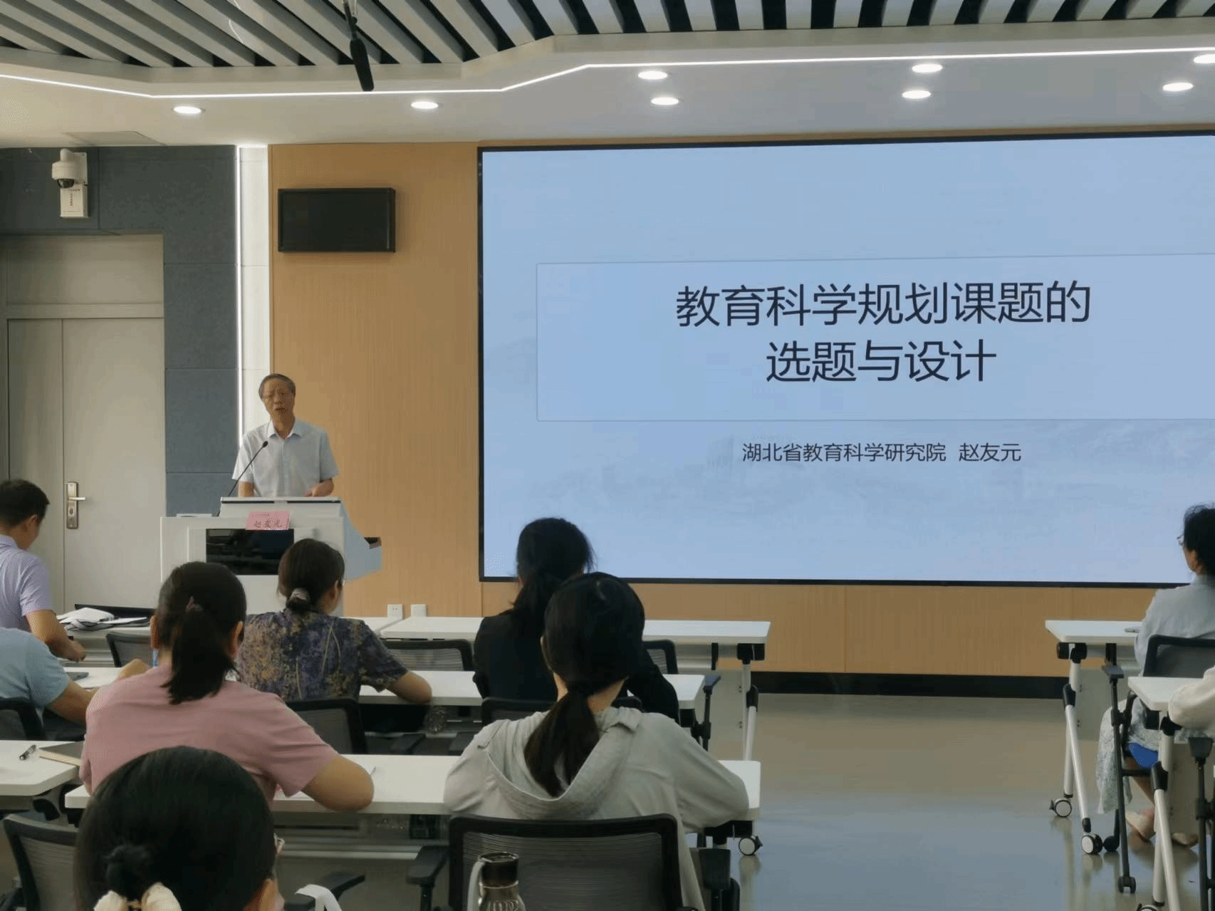 赵友元副研究员从教育科学研究的基本属性、教育科学规划课题的选题、教育科学规划课题的设计三个方面,对如何开展教育科学研究进行辅导授课。他指出,高校教师重视和开展教育科学研究,是解决教育教学实践过程中具体问题的有效方式。他结合自身多年从事教育科学研究与管理的实践经验,从教育科学研究的选题、设计等方面,有针对性地进行了深入浅出的讲解。