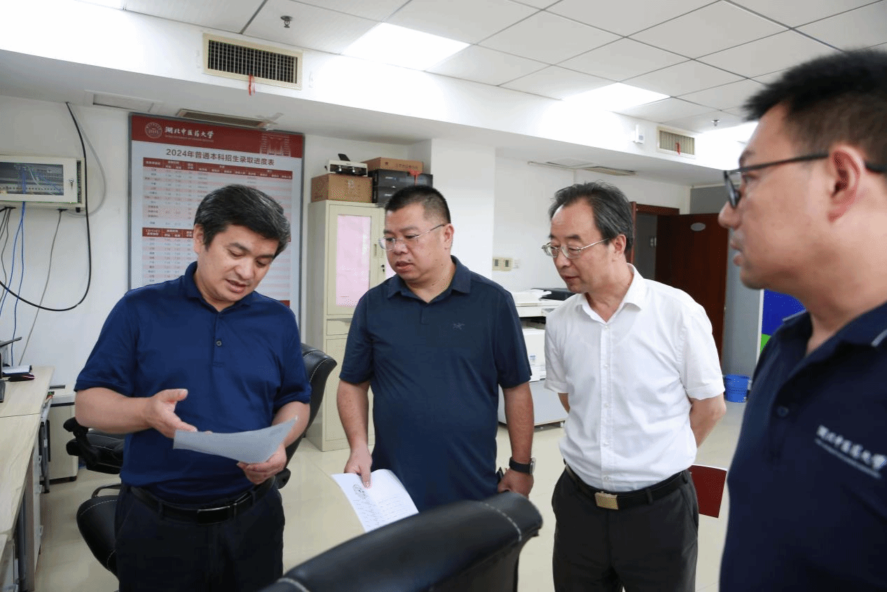 本网讯 我校提前批单设志愿的招生录取工作正在紧张进行之中,7月12日,校党委书记、校长刘松林,校党委副书记张子龙一行到本科招生录取工作现场检查指导工作,看望慰问暑期奋战在招生录取一线的工作人员。