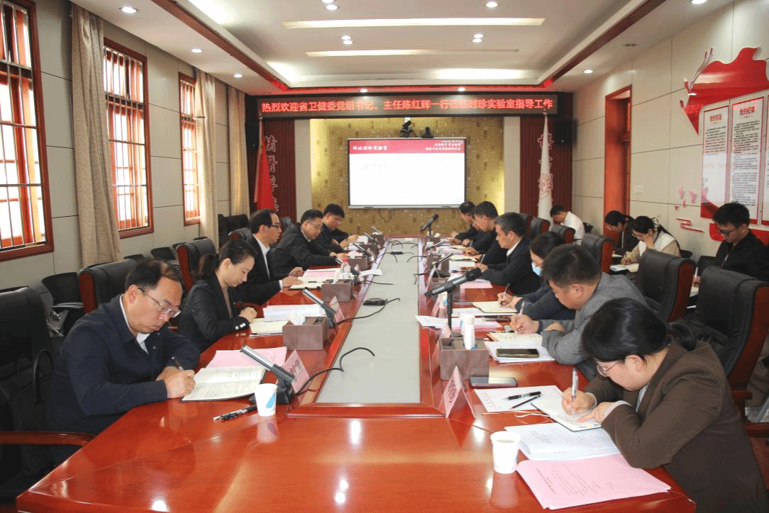 本网讯 11月9日,湖北省卫健委党组书记、主任陈红辉赴湖北时珍实验室调研。省卫健委党组成员、副主任,省中医药管理局局长邓小川主持调研座谈会。省卫健委科技教育处处长张近芳、中医药综合处处长李涛、中医药医政管理处处长席仁刚、办公室副主任傅爽,学校党委书记、湖北时珍实验室常务副主任刘松林,副校长、附属医院院长何小明出席会议,学校办公室、科发院、基本建设处、资产与实验室管理处负责人,湖北时珍实验室工作人员参加会议。
