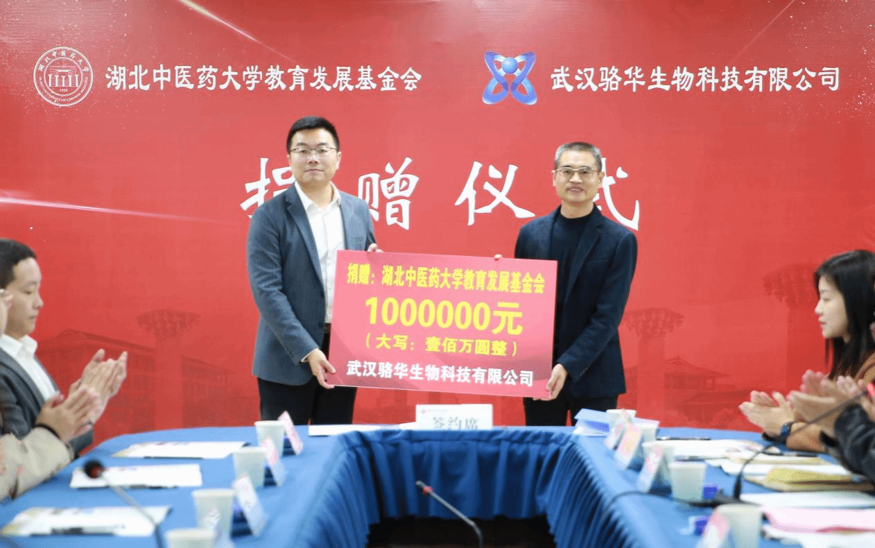 安徽骆华生物科技有限公司董事长苗春光、首席技术官丁卫平,武汉骆华生物科技有限公司总经理周宇,武汉骆华生物科技有限公司合伙人、总经理助理、市场总监等一行8人,学校党委书记刘松林、副校长杨波出席捐赠仪式,学校办公室、科发院、教育部重点实验室负责人及专家教授代表参加活动。仪式由杨波主持。