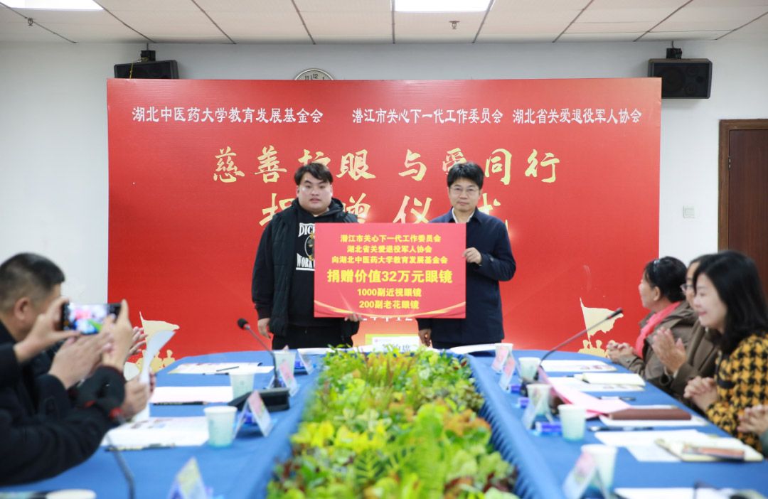 本网讯 12月4日,“慈善护眼 与爱同行”捐赠仪式在黄家湖校区明德楼A座一楼会议室举行。潜江市关心下一代工作委员会联合湖北省关爱退役军人协会及爱心企业为学校教育发展基金会捐赠1000副近视眼镜和200副老花眼镜,助力贫困学子点亮“睛”彩人生,关爱老同志用眼健康。