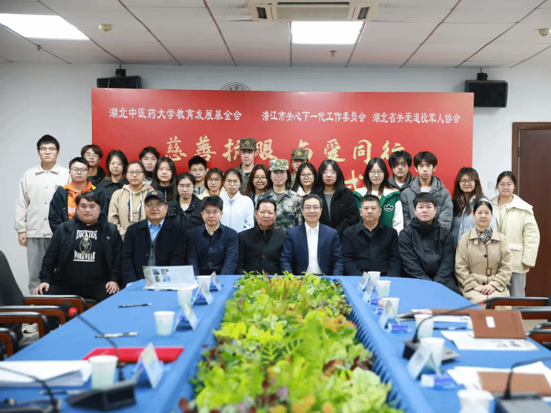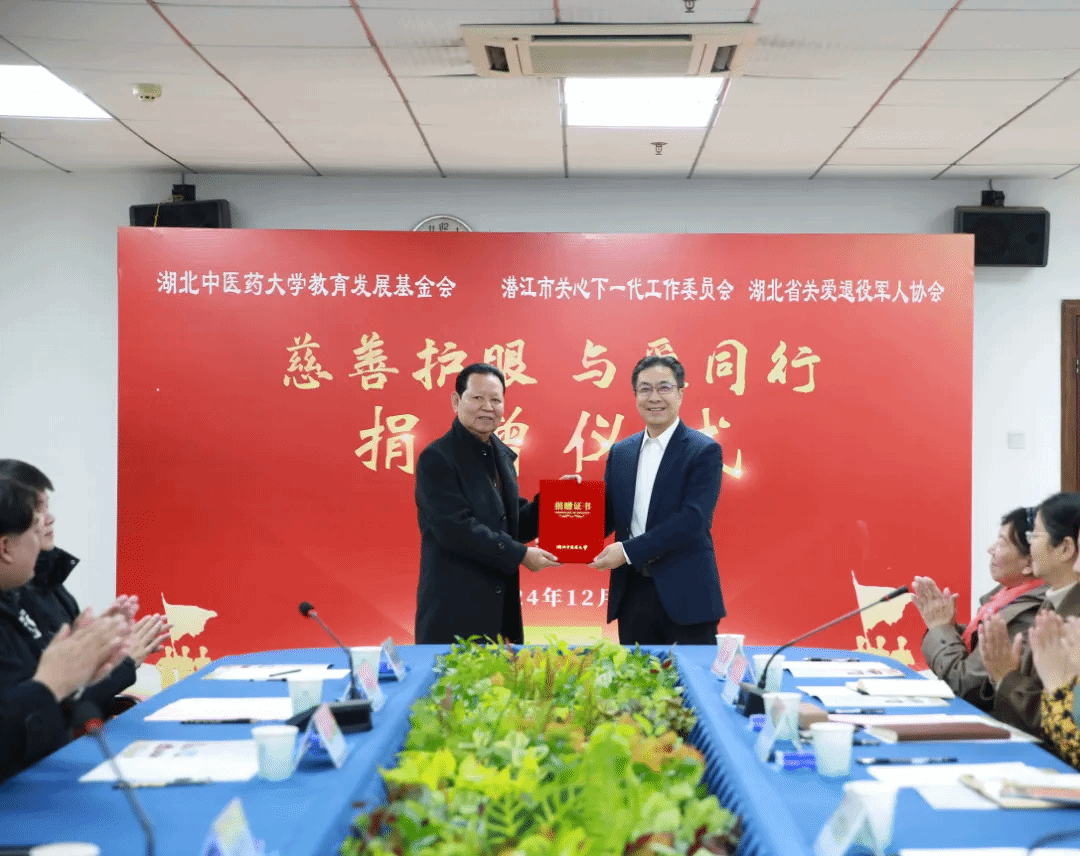 潜江市关心下一代工作委员会常务副主任李必华,湖北省退役军人事务厅一级调研员兼湖北省关爱退役军人协会秘书长曹华,湖北省关爱退役军人协会副会长刘志卿,关心下一代慈善护眼公益活动组委会副主任王泽江,爱心企业家代表余祖梅、李昱辰,副校长刘建忠,党委常委曹继刚出席捐赠仪式,学校办公室、学生工作部、工会、离退休工作处、学校关工委等部门负责同志,学生代表参加活动。仪式由曹继刚主持。