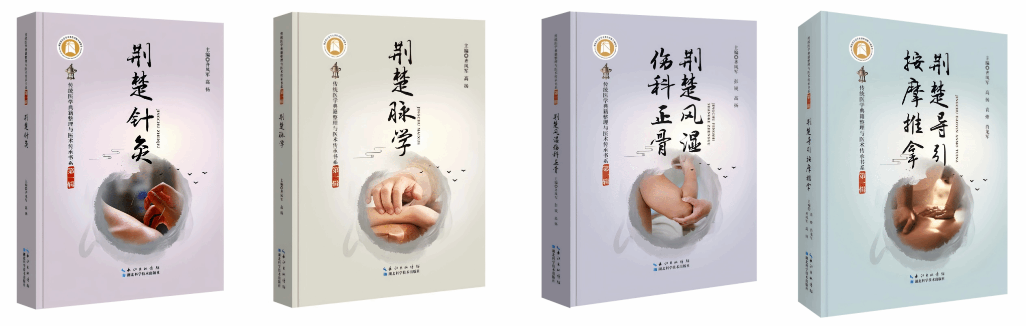 本网讯 近日,由我校针灸骨伤学院齐凤军教授团队编著的“荆楚医学丛书”出版发行。本丛书涵盖《荆楚针灸》《荆楚脉学》《荆楚风湿伤科正骨》《荆楚导引按摩推拿》四部力作,旨在深入挖掘并传承荆楚医学的千年精髓。