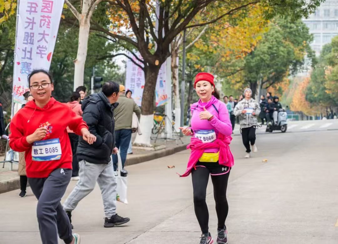 比赛过程中,各组选手展现出自身竞赛水平和团队协作精神。教工男子组选手们在赛道上你追我赶,教工女子组选手们姿态优雅、步伐稳健,展现了青年教师的活力与毅力;学生团体组充满朝气,相互鼓励,共同前进,体现了当代大学生的团结与拼搏。