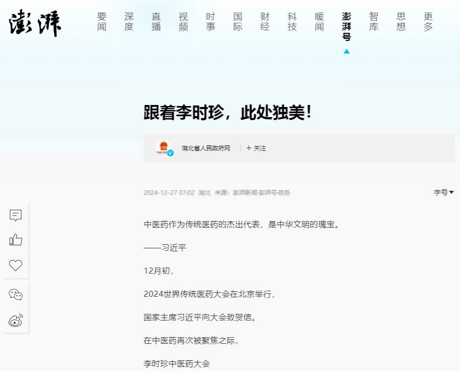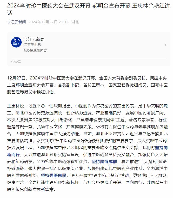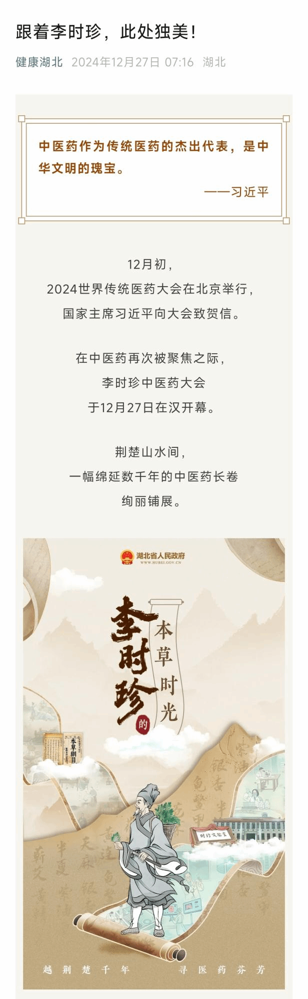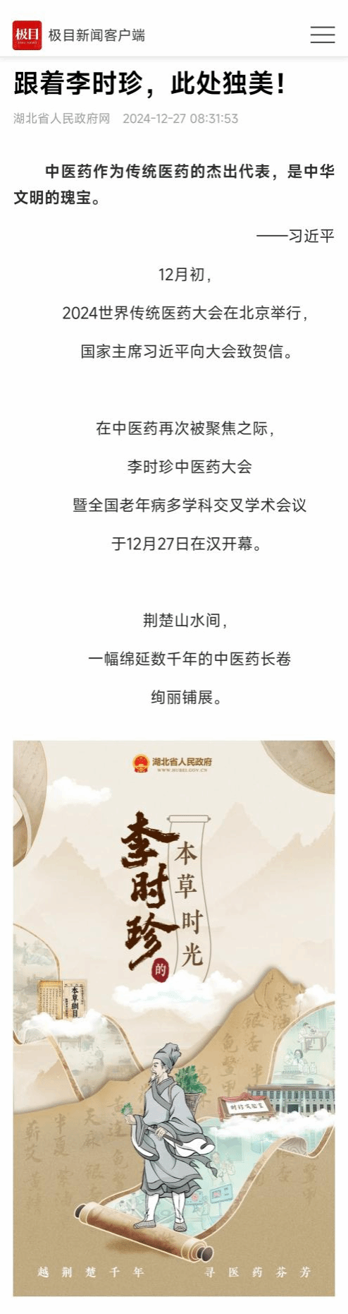 26.湖北省人民政府网:2024李时珍中医药大会在武汉开幕