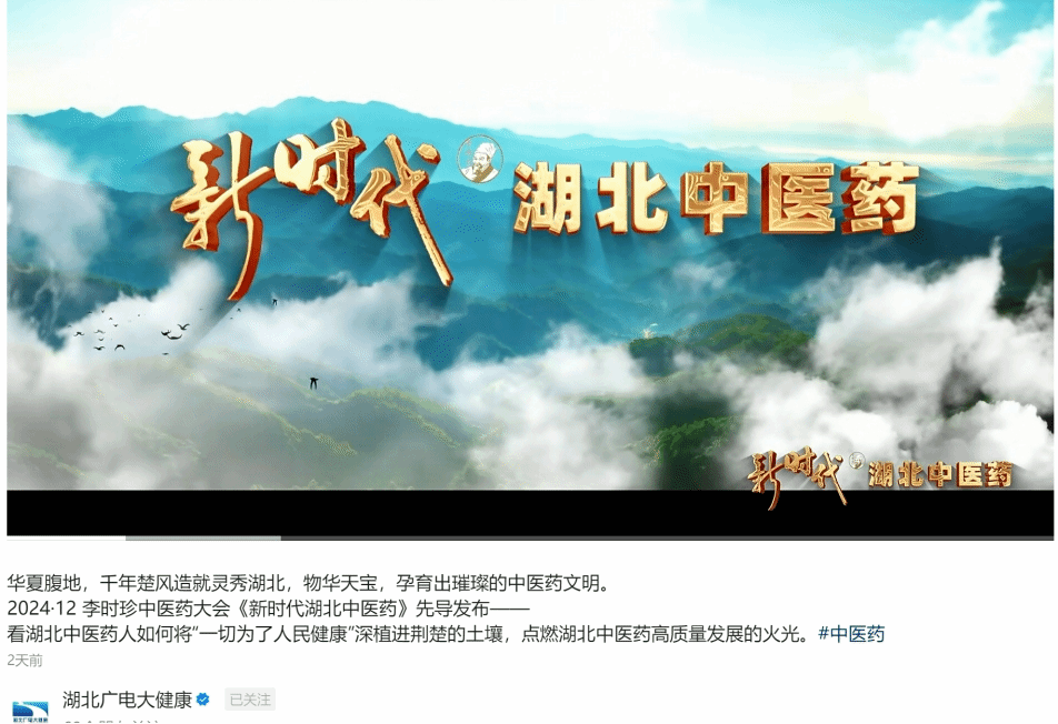 34.湖北广电大健康微信视频号:李时珍中医药大会《新时代湖北中医药》先导发布