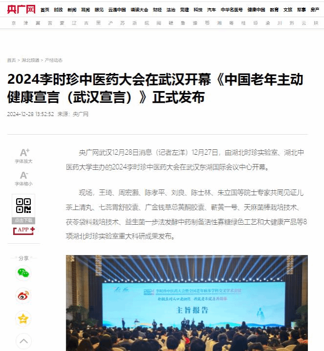 5.央广网:2024李时珍中医药大会在武汉开幕 《中国老年主动健康宣言(武汉宣言)》正式发布