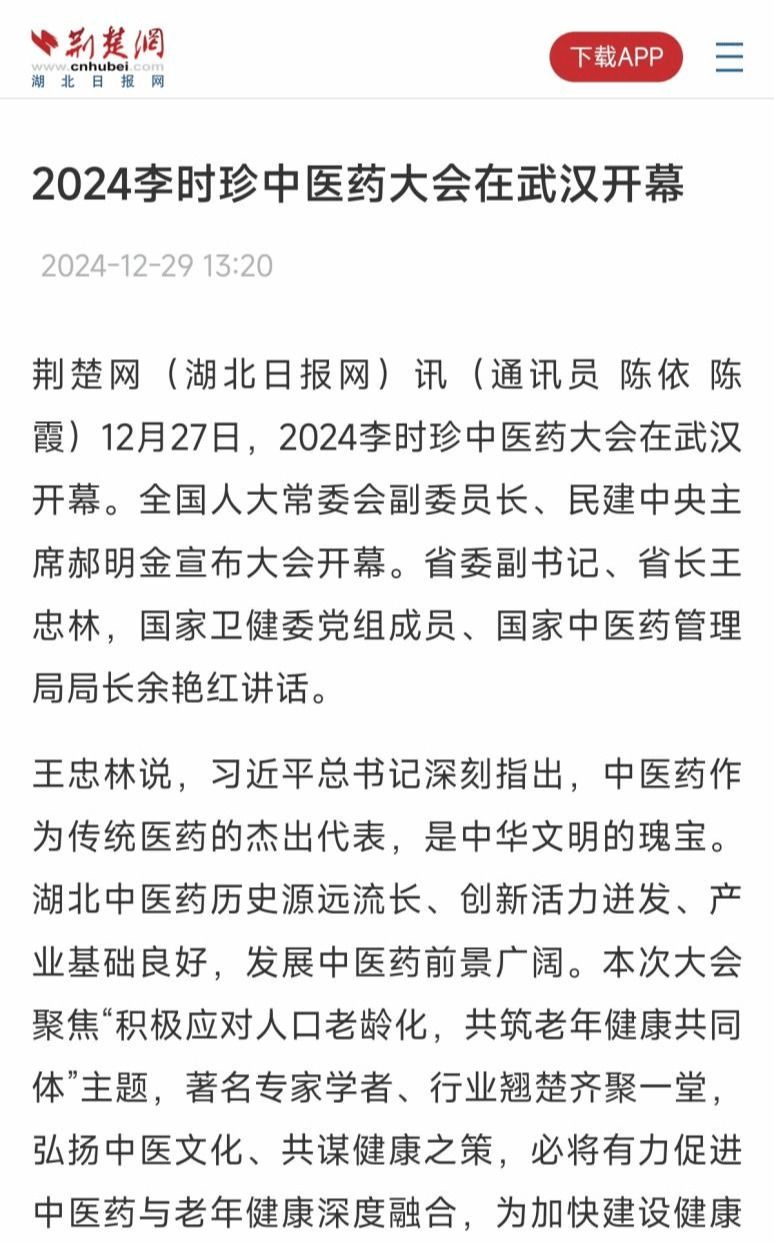 31.荆楚网:2024李时珍中医药大会在武汉开幕