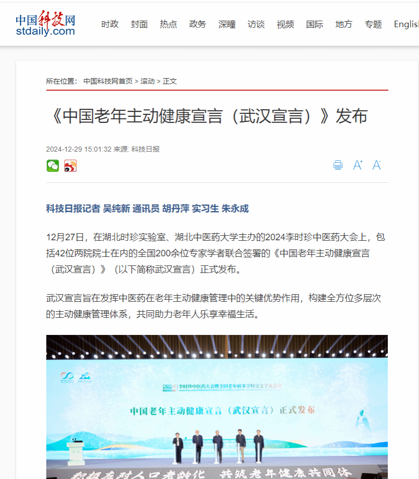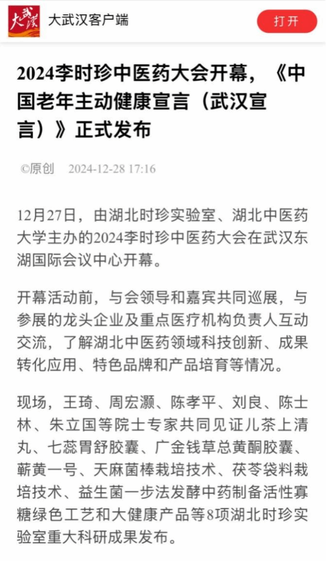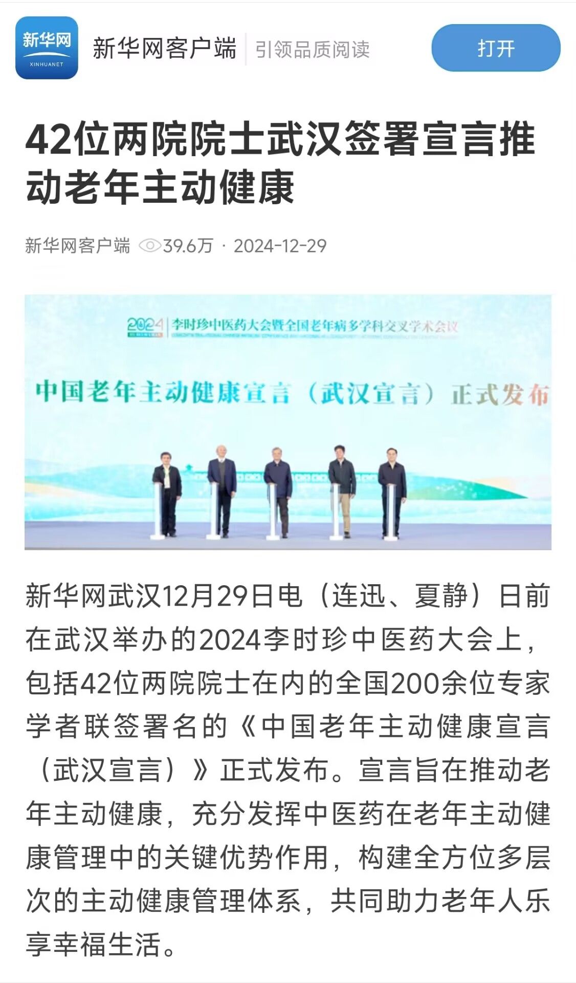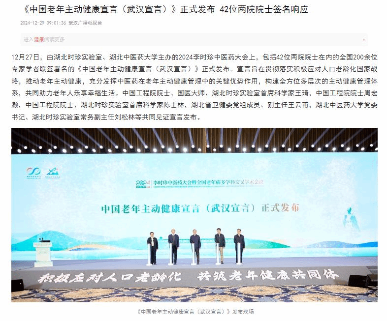 35.长江日报:2024李时珍中医药大会开幕,《中国老年主动健康宣言(武汉宣言)》正式发布