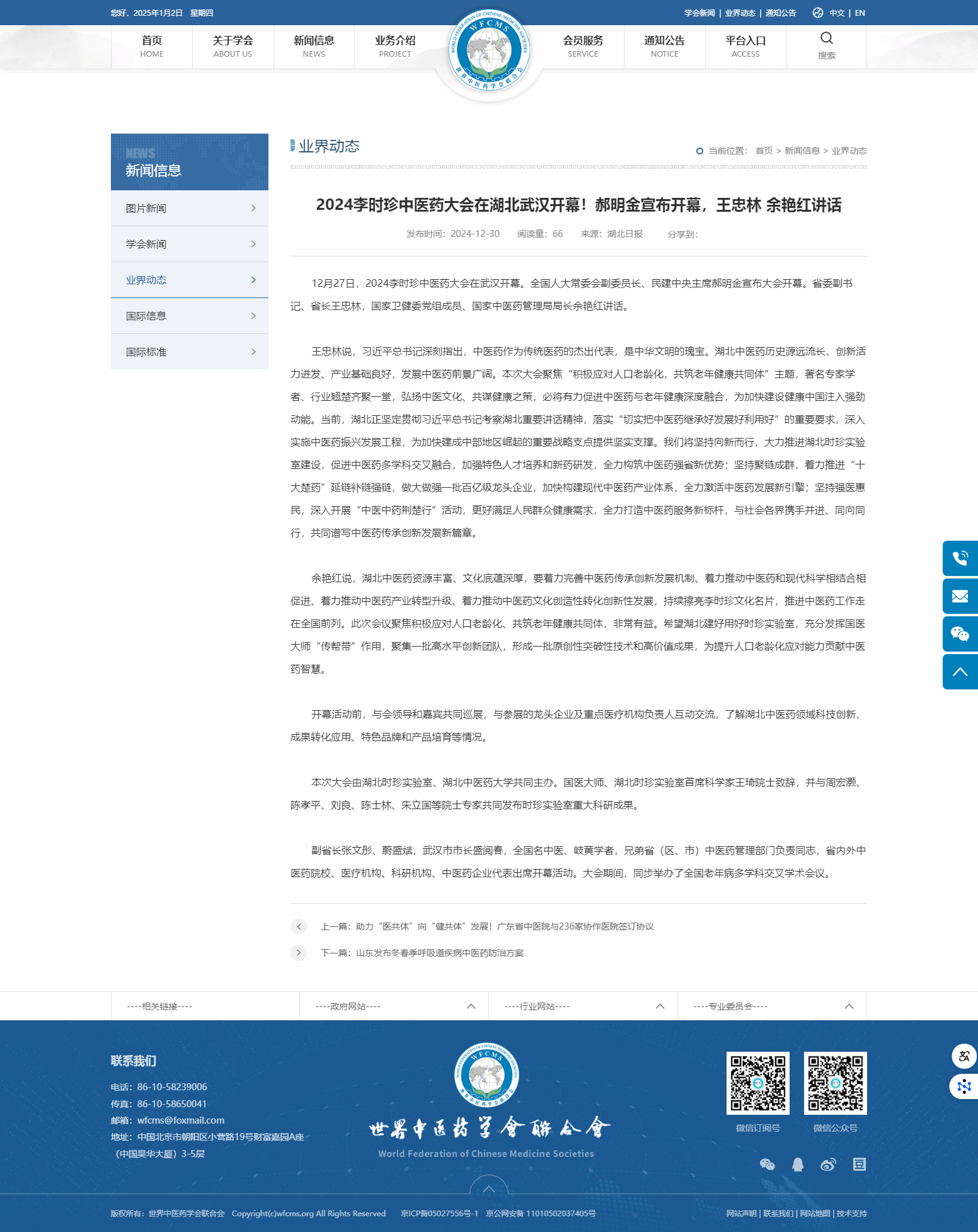 19.世界中医药学会联合会网站:2024李时珍中医药大会在湖北武汉开幕!郝明金宣布开幕,王忠林 余艳红讲话