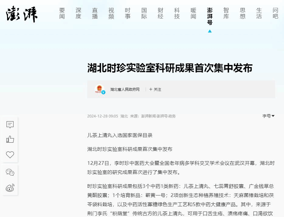 44.澎湃新闻:湖北时珍实验室科研成果首次集中发布