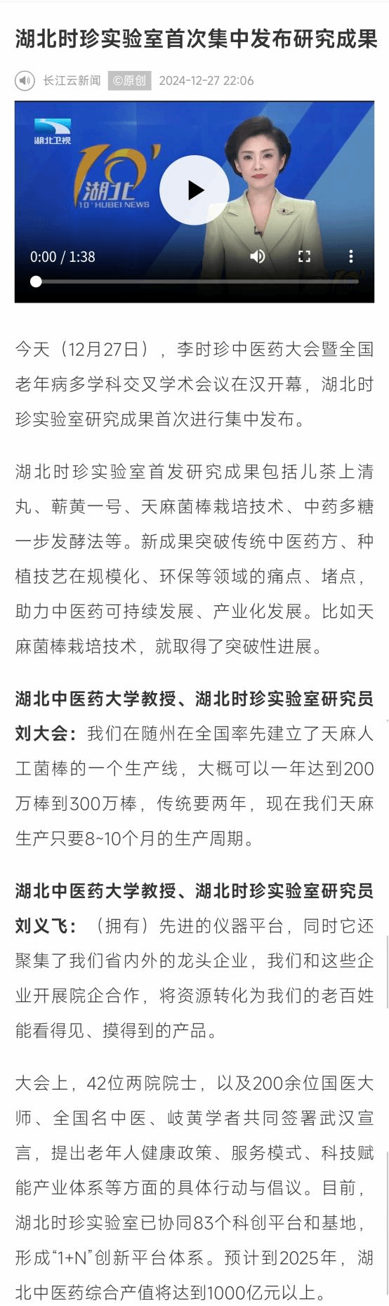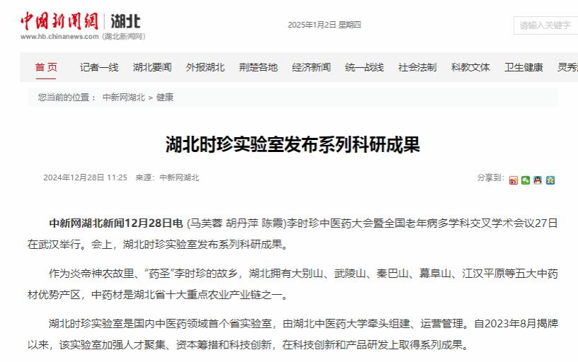 25.湖北电视台湖北新闻:湖北时珍实验室首次集中发布研究成果