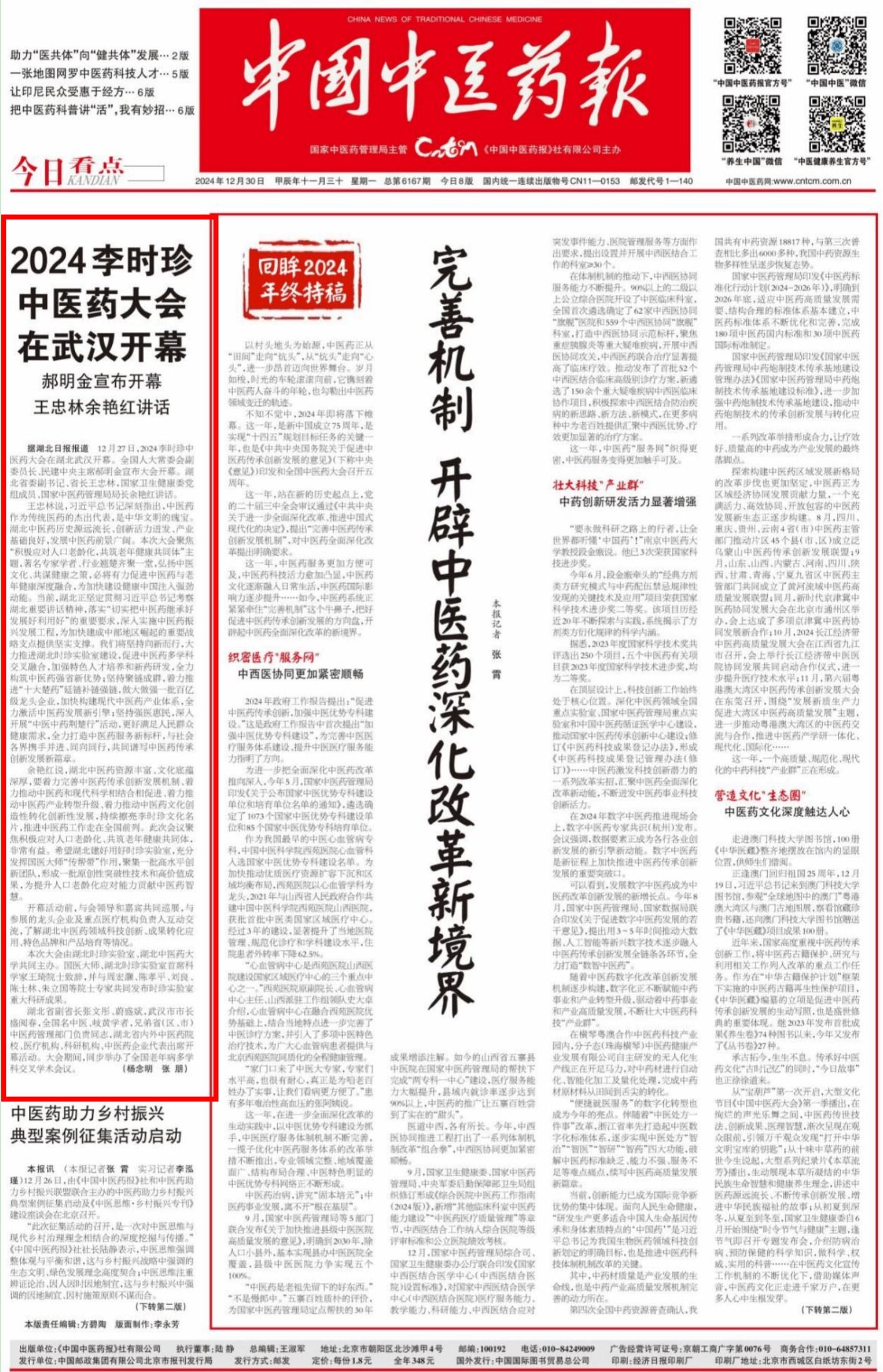 16.中国中医药报头版头条:2024李时珍中医药大会在武汉开幕