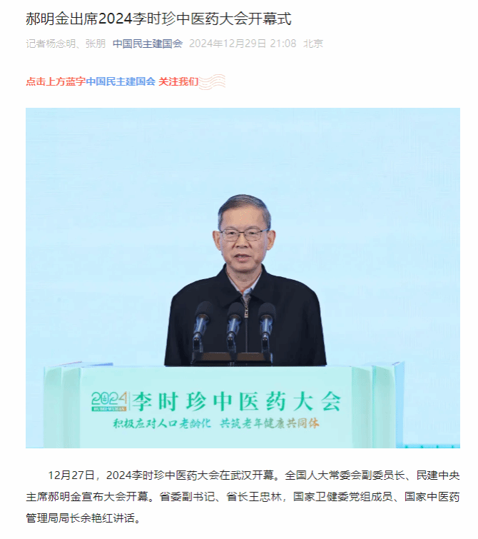 15.民建中央官方微信:郝明金出席2024李时珍中医药大会开幕式
