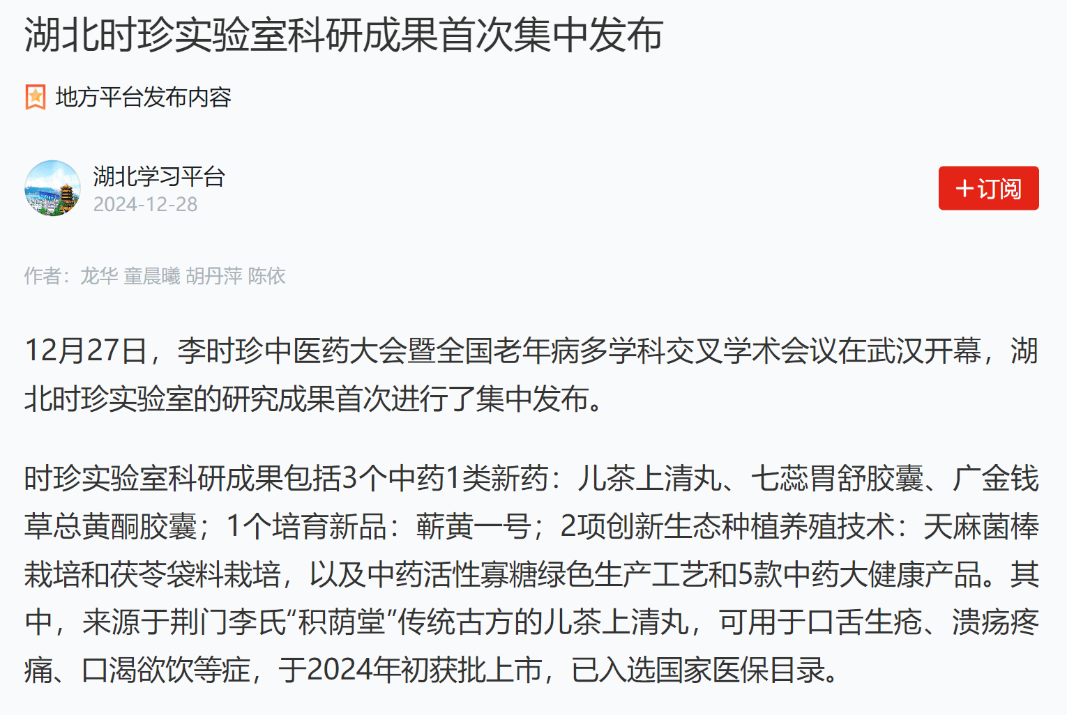 27.湖北省人民政府网:湖北时珍实验室科研成果首次集中发布