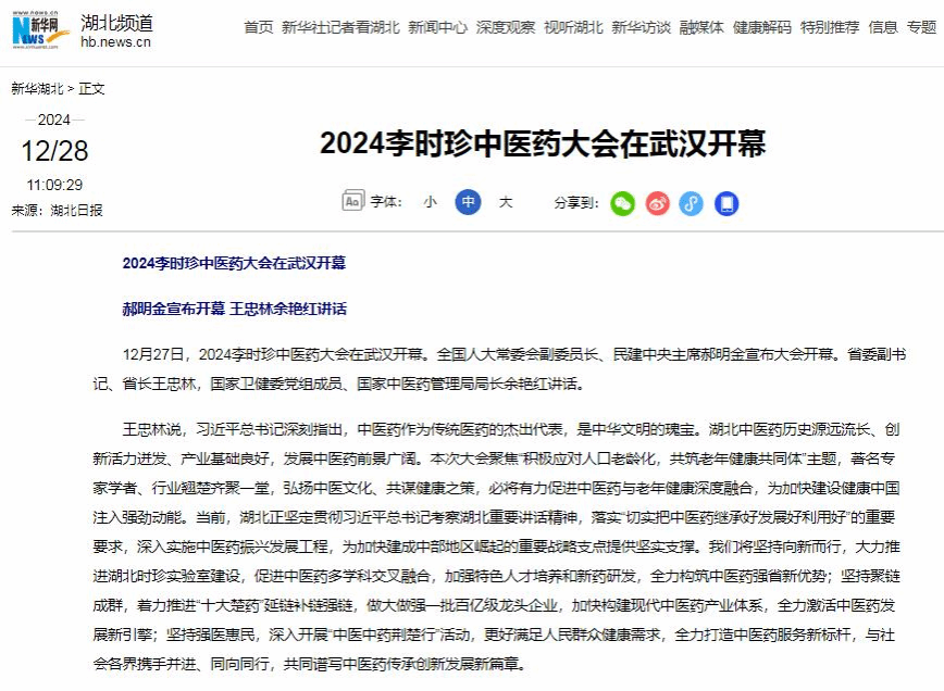 2.新华网:2024李时珍中医药大会在武汉开幕