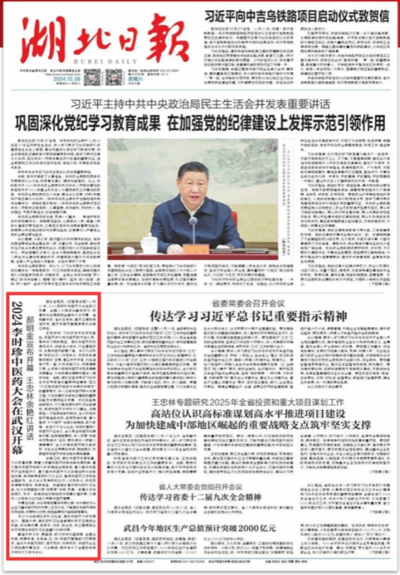 21.湖北日报头版:2024李时珍中医药大会在武汉开幕 郝明金宣布开幕 王忠林余艳红讲话