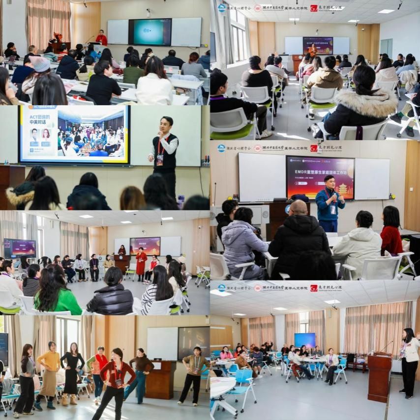12月28日下午,大会进行了7场平行工作坊,内容包括:汪海燕带领的《“团体辅导课”课程建设探讨》,张演善带领的《灵活的ACT团体》,刘琼珍带领的《“爱的语言”心理剧体验工作坊》,刘晓丽带领的《尊巴舞减压团体辅导》,朱宏博带领的《动力学团体治疗和“金鱼缸”团体体验》,茆丁带领的《EMDR重塑原生家庭团体工作坊》和余璇带领的《“心动力·幸福夜校”——高校一站式社区“五育润心”心育活动设计与实施》。